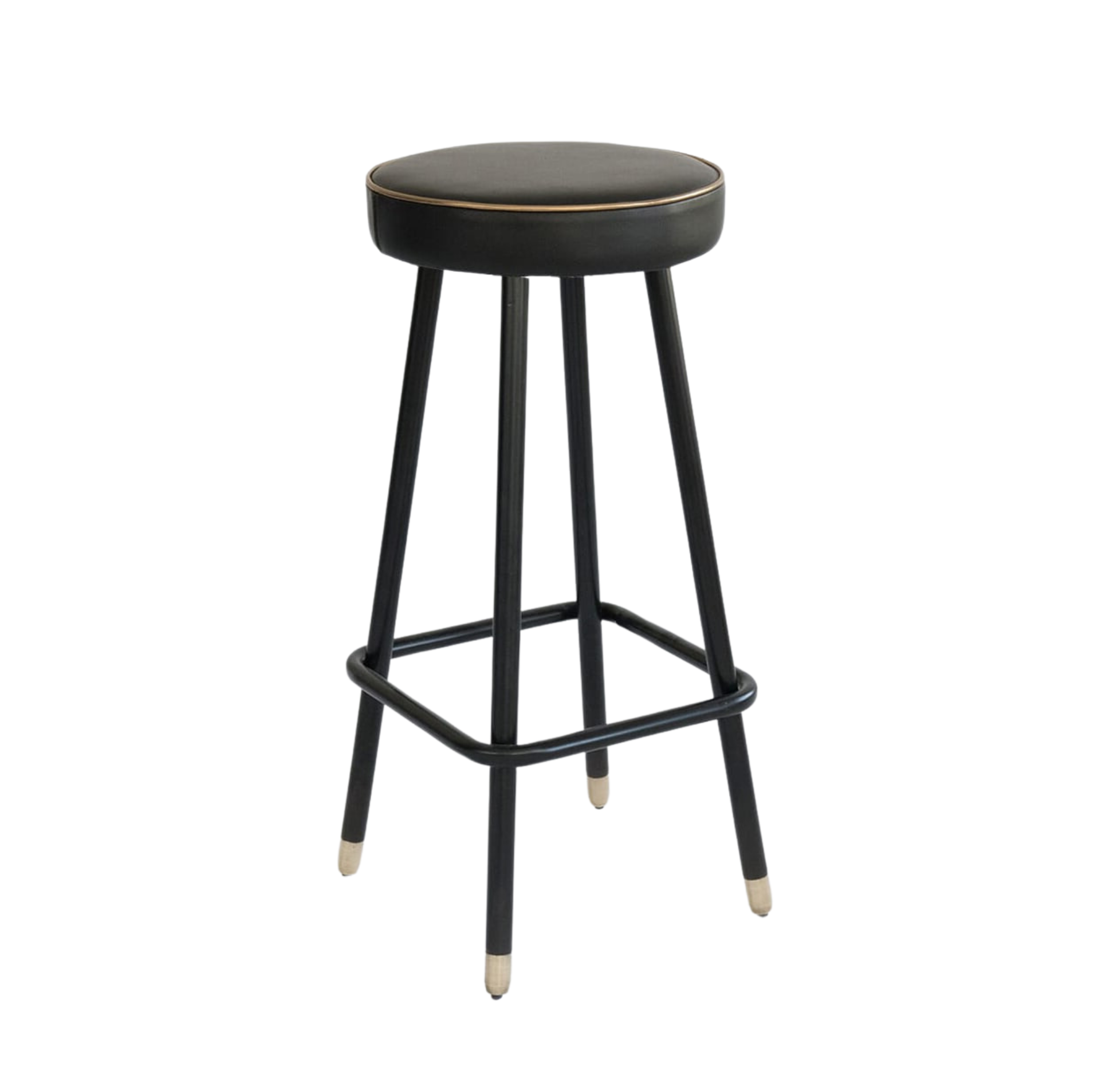 The “Block-B” stool combines minimalist design with a touch of luxury, making it ideal for hospitality and commercial settings. Designed for comfort and ease of use, it features a sleek steel base with polished brass leg accents that elevate its aesthetic. The stool fits seamlessly into bar, lounge, and dining areas.