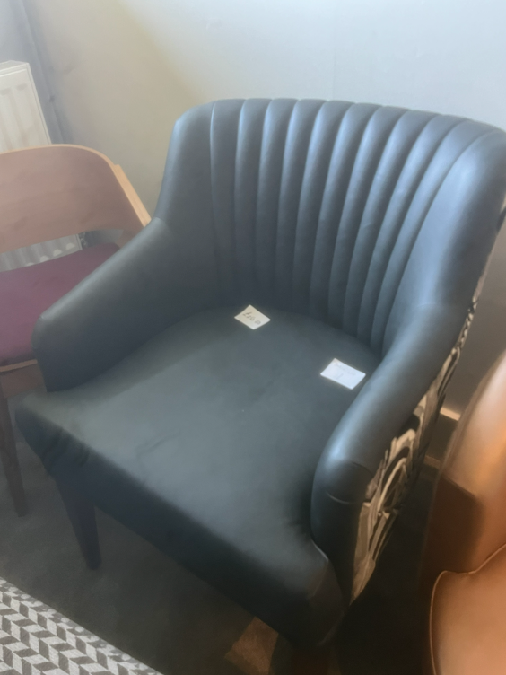 DARK FLUTED WING BACK W PATTERNED BACK, £50 X1, SHOWROOM CLEARANCE