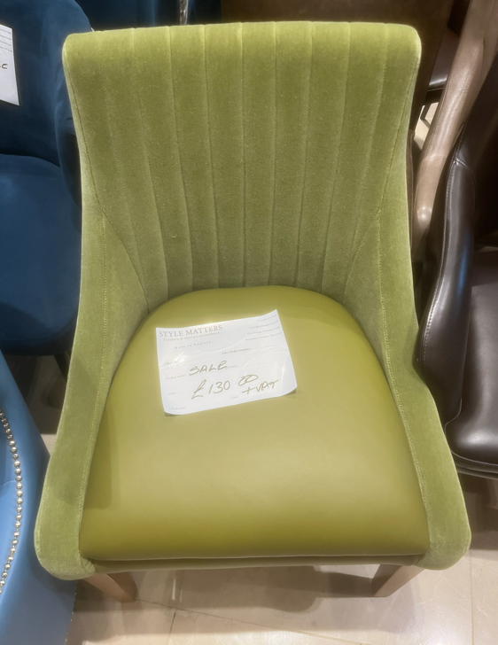 GREEN VELVET DINING CHAIR, £40 X1, SHOWROOM CLEARANCE