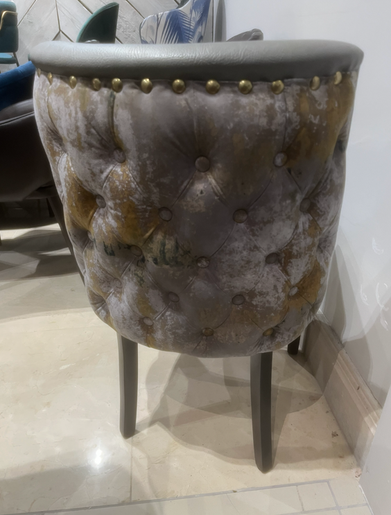 GREY DINING CHAIR W BUTTON BACK, £40 X1, SHOWROOM CLEARANCE