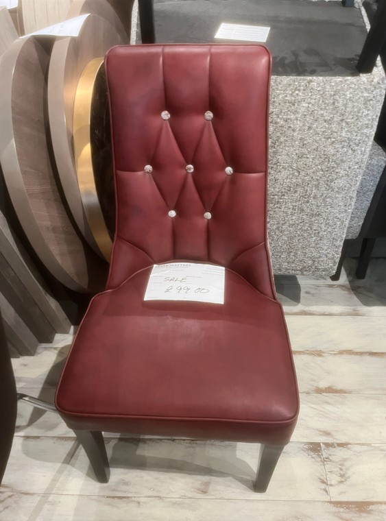 RED BUTTON BACK DINING CHAIR W FABRIC BACK, £30 X1, SHOWROOM CLEARANCE