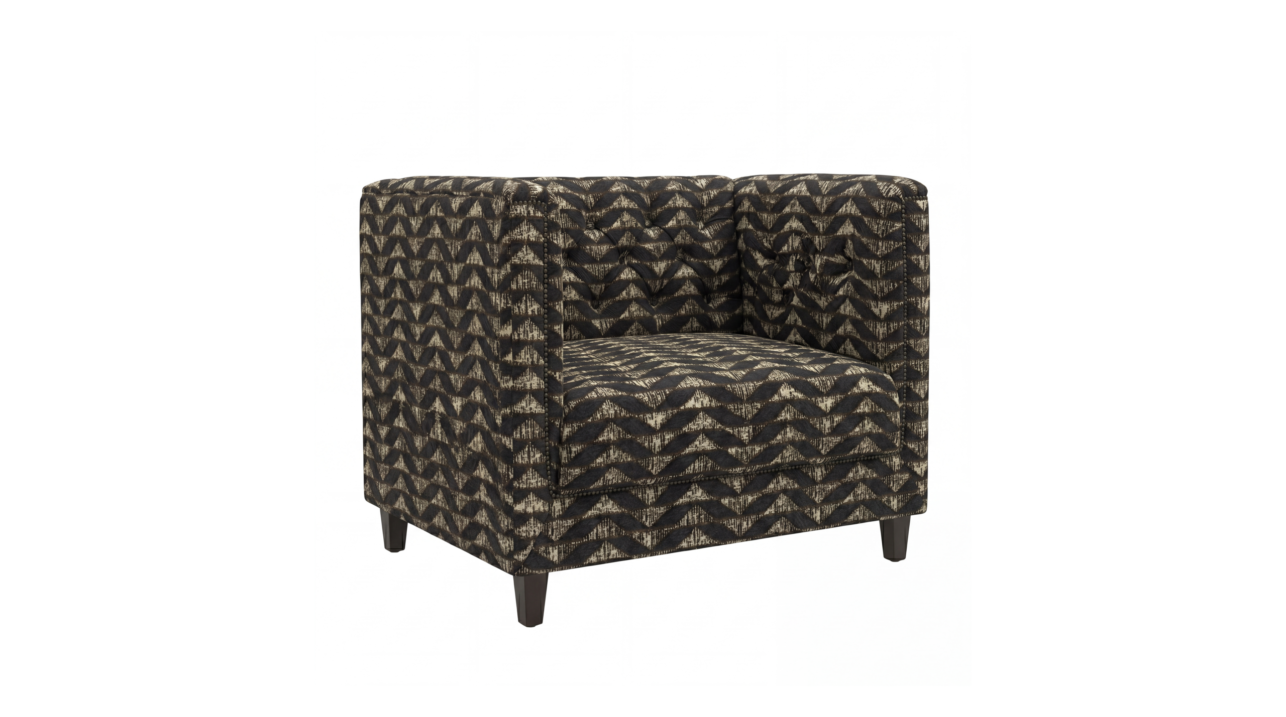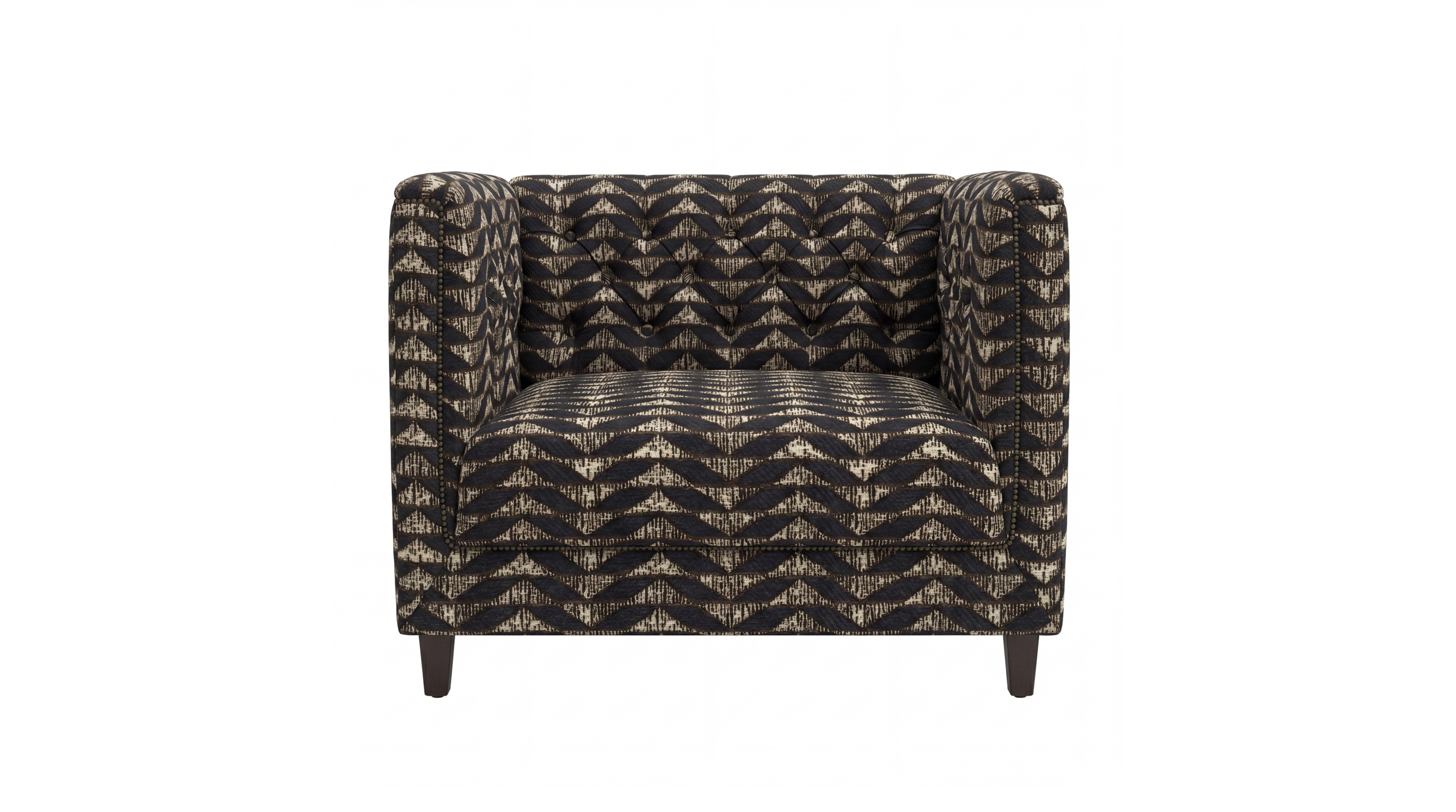 Updated,  With deep button detail & a slanted back, The Abbey collection is here to make a statement. The stud detail adds yet another dimension of detail to this collection & finishes off each product perfectly. Upholstered in Pierre Frey's Le manach Kilifi.